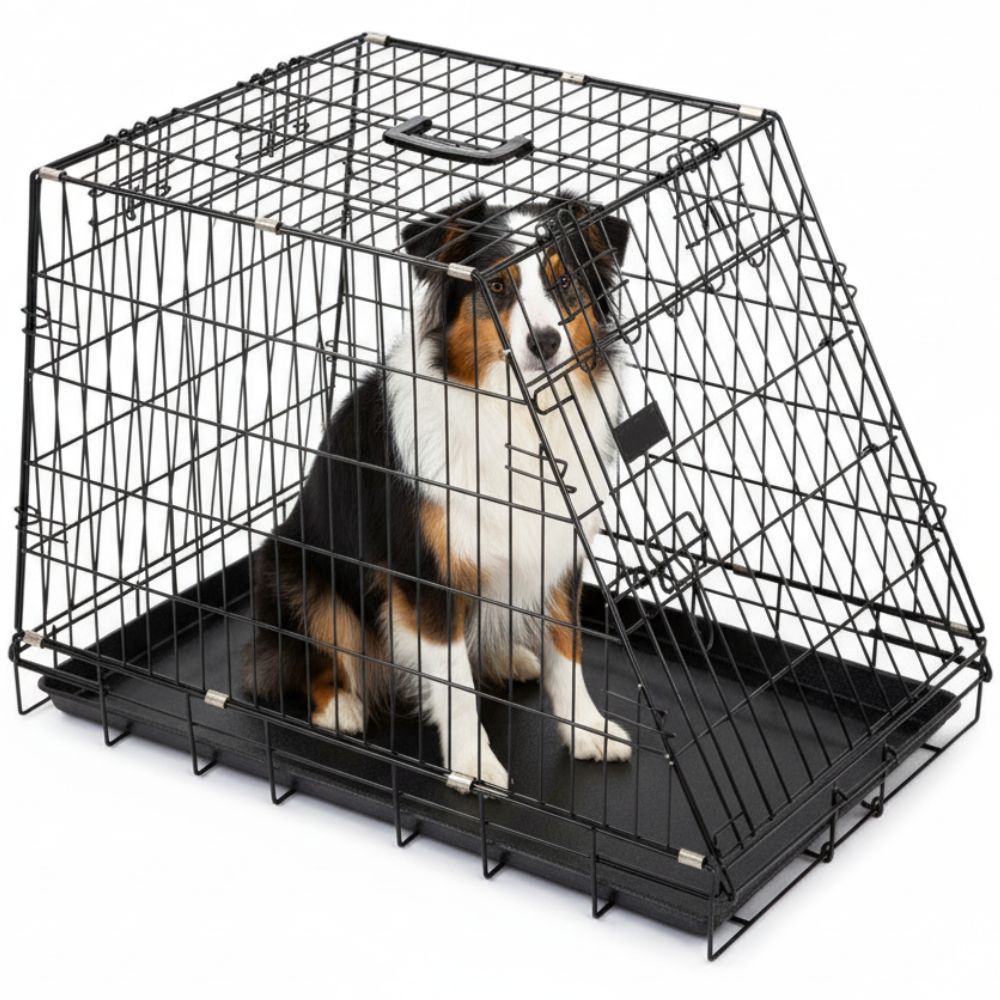 Cage Chien Voiture Moyenne Inclinée Métal Noir Bac Plastique