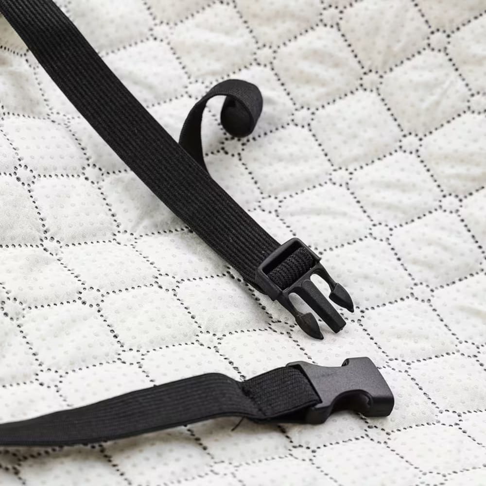 Le nylon imperméable offre une durabilité exceptionnelle face aux griffures, usure quotidienne et liquides. Les sangles sécurisées se fixent solidement aux appuie-têtes. Compatible avec la quasi-totalité des véhicules. Lavable à la main pour nettoyage simplifié après sorties boueuses.