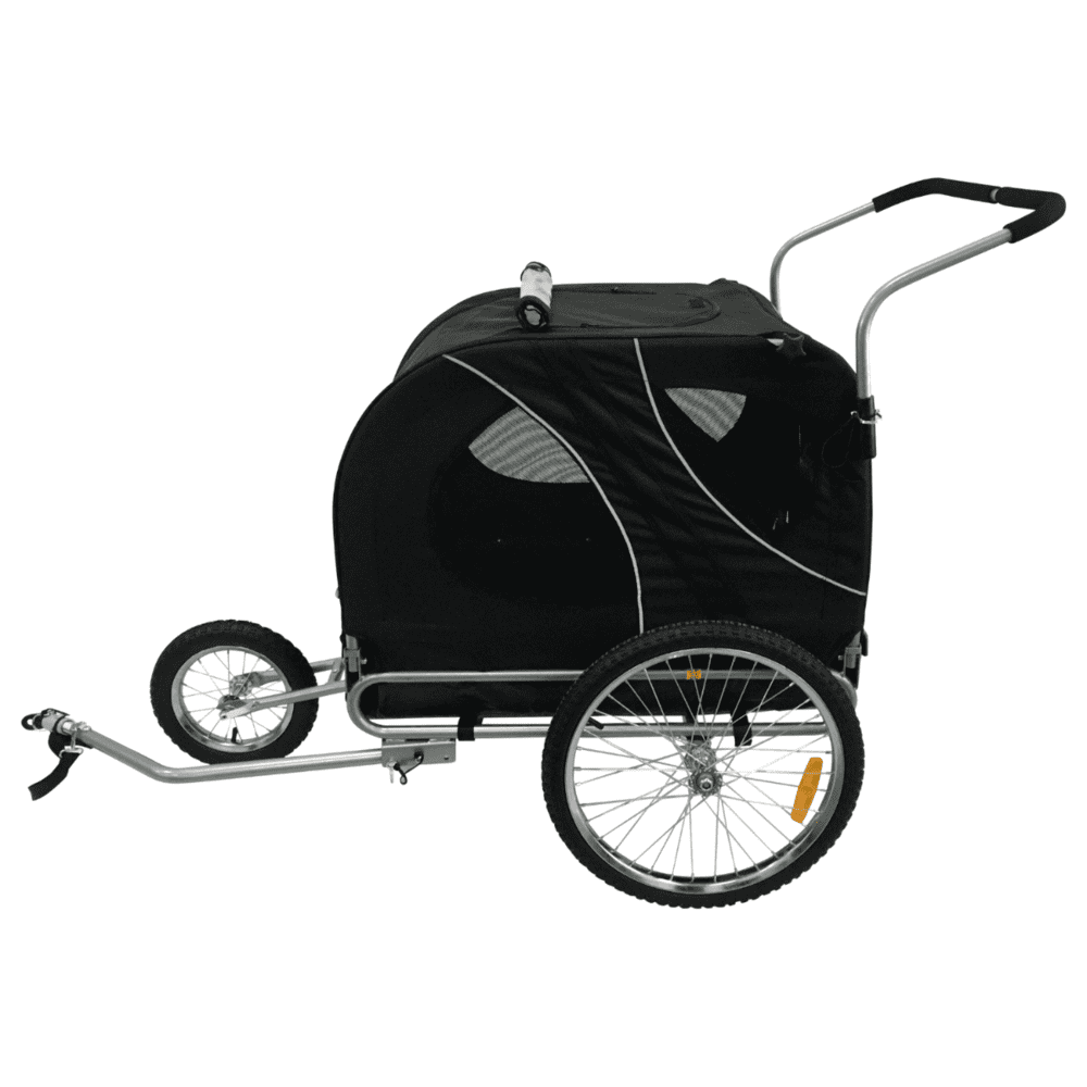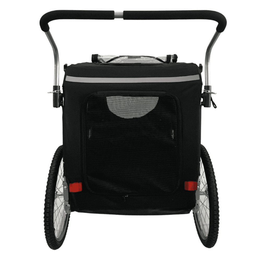 Cette remorque spacieuse (80 × 57 × 66 cm) passe aisément par la plupart des portes avec ses 78 cm de largeur. Elle supporte jusqu’à 40 kg et pèse 17 kg. Grâce à ses entrées avant et arrière, vous choisissez par quel côté votre chien entre. La porte avant peut s’ouvrir à deux hauteurs, adaptée à la taille de votre chien.