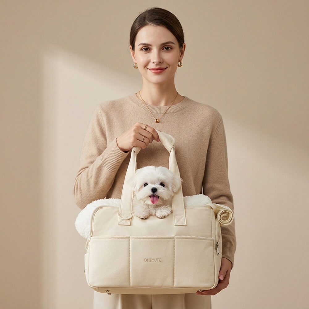Oubliez les sacs impersonnels et inconfortables. Ce sac à main de transport beige est l’alliance parfaite entre chic et praticité. Avec son design en coton doux 100% respirant et sa teinte beige intemporelle, il vous accompagne dans toutes vos sorties tout en offrant à votre boule de poils un nid rassurant.
